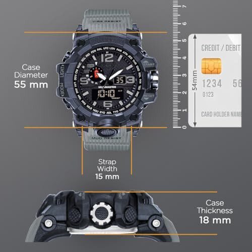 - MEASUREMENTS – This analog-digital watch with a 55 mm diameter, protected by scratch-resistant mineral glass. It weighs around 126 g and has a 3-hand analog quartz movement. The strap provides a comfortable fit for everyday wear.