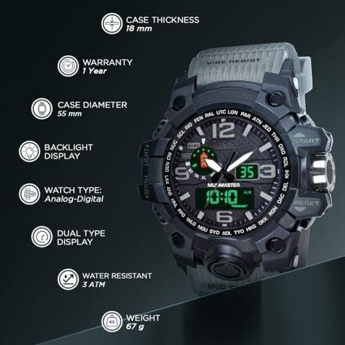 - LIGHTWEIGHT – This analog-digital watch offers a perfect blend of style and functionality while being lightweight. The comfortable weight ensures that it won’t feel cumbersome on your wrist, allowing you to wear it for extended periods without discomfort. Whether you’re engaged in physical activities or going about your daily tasks, this watch provides the convenience of a dual display while remaining lightweight and unobtrusive.