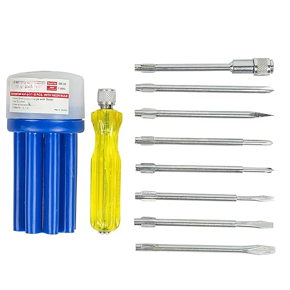 8-IN-1 PIECE SCREWDRIVER KIT: Spartan BS-02 Screw Driver Kit contains 3 flat blades of 3mm, 5mm and 6mm, 2 Phillips heads of PH0, PH1 and PH2, an extension rod, and a round poker bar with a transparent PVC handle