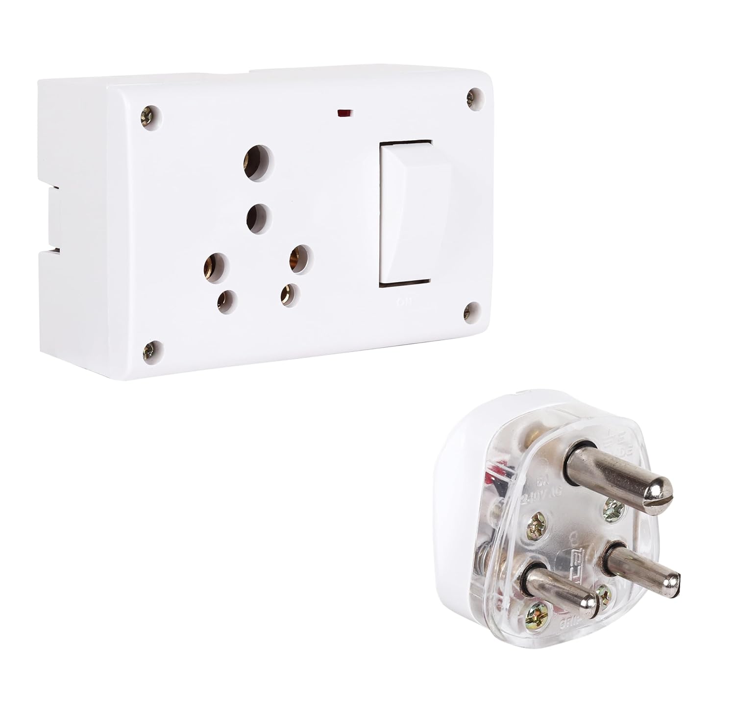 Switch – Socket Combined Box 16 AMP With Indicator – Polycarbonate Qty – 1 (White) + MICA 3 Pin Plug 16 AMP Fusion With Indicator – Polycarbonate Qty – 1 (White)