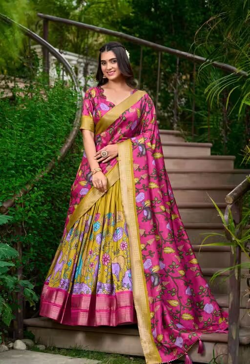 the perfect blend of tradition and trend. Made with soft, breathable fabric, this lehenga features stunning digital prints that add a vibrant and artistic touch to your festive look. The semi-stitched lehenga comes with a matching blouse piece and a coordinating dupatta to complete your ethnic ensemble.