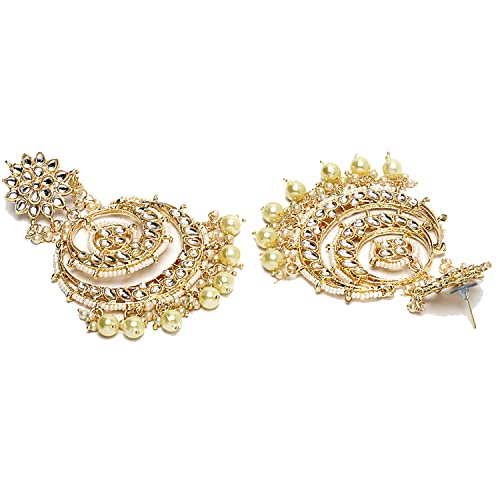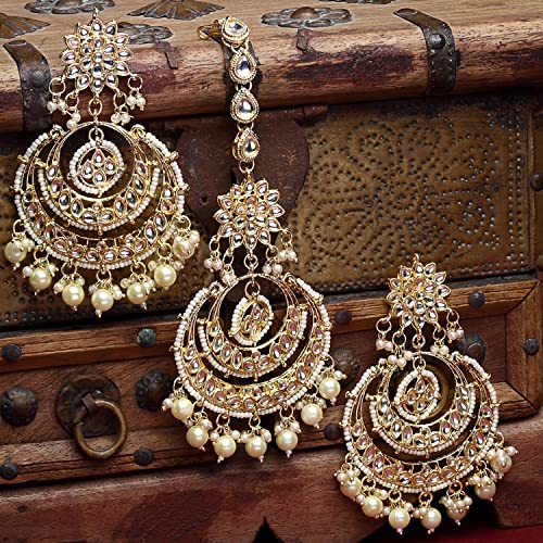 Generic Name : | Traditional Gold Plated Big Chandbali Kundan & Pearl Earring Set With Maang Tikka |