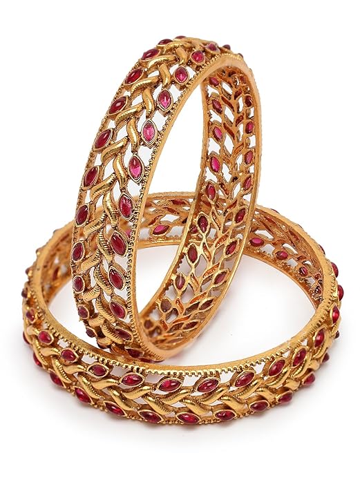 Ethnic Elegance: Embrace the charm of ethnic jewelry with this set of 2 gold-plated red broad kada bracelets. The intricate design reflects a perfect blend of tradition and contemporary style, adding a touch of grace to your ensemble.