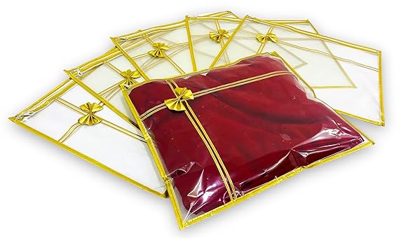 Transparent Single saree/suit Packing 10 Piece Flower Saree Cover/Saree Bag Organizer for Wardrobe Storage or Gifting .(Pack of 10,pvc)