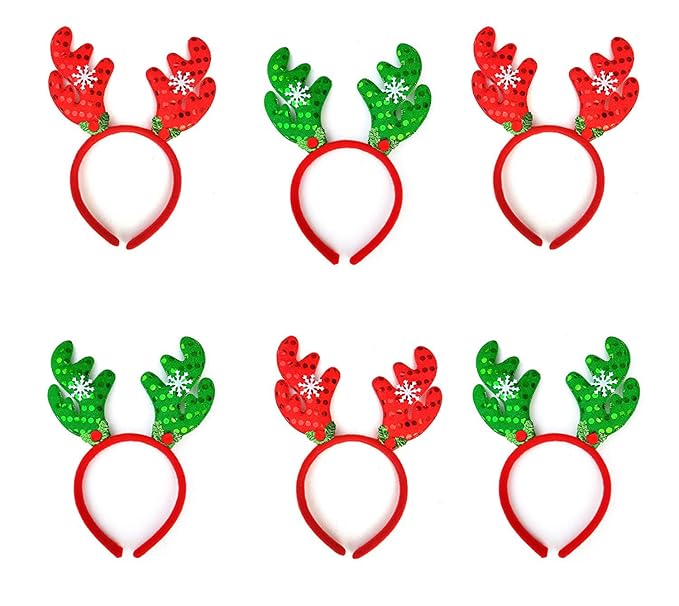 SHOW OFF YOUR CHRISTMAS STYLE: Accessorize yourself for the holidays with a pair of festive red and green reindeer antlers with jingle bells.