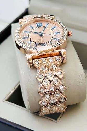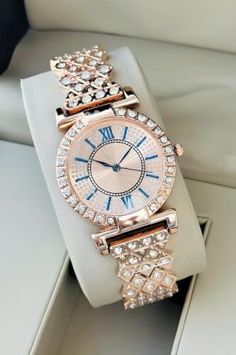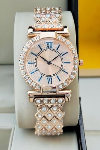 uxury Dial with Roman Marker in Diamond Studded Round case with brecelet Strap S