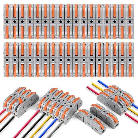 34PCS CABLE CONNECTOR KIT: Including 34pcs cable connector, allows you can DIY assemble cable route or extend the cable length. The universal plug is suitable for 0.2~4 mm?/AWG28-12 solid wire and 0.08~2.5 mm?/28-14AWG soft wire. With a new sliding button combination design, the electrical connections can be freely combined and spliced into 2/3/4/6-way docking cable connectors.