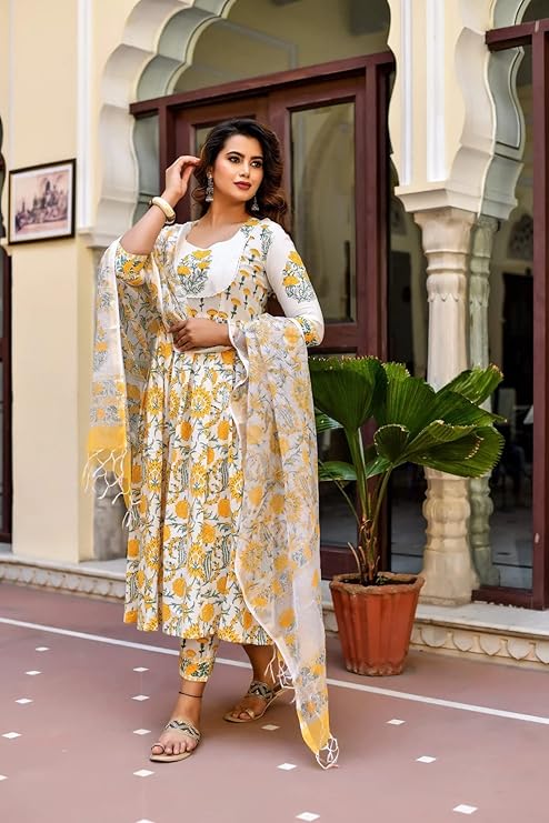 ? Fit Type: Straight; Salwar Suits : Anarkali Kurta Pant and printed Dupatta Set