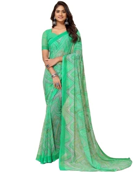 Women’s Chiffon Abstract and Geometric Printed Saree with Blouse Piece
