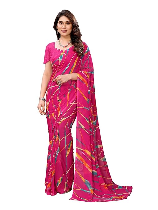 Women’s Floral Print Georgette, Chiffon Saree with Matching Blouse Piece | Stylish & Beautiful Fancy Saree for Festivals, Wedding, Parties, Casual Outings