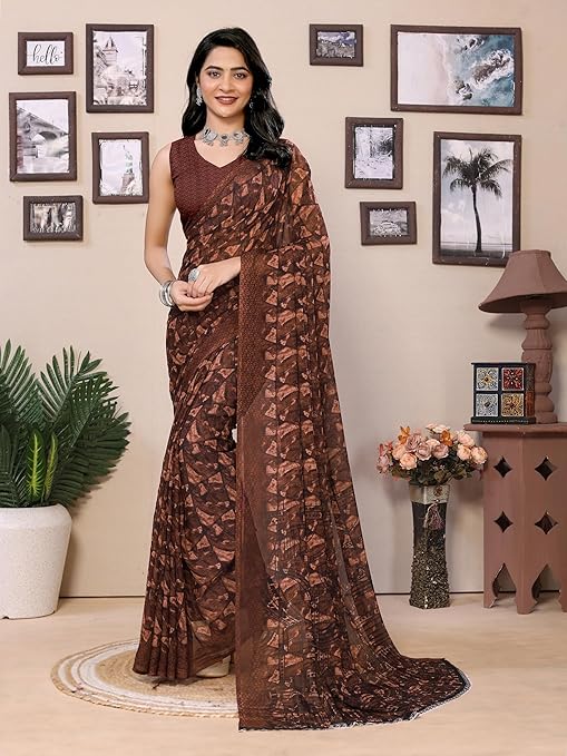 Women’s Floral Printed daily Georgette Saree with Unstitched Blouse Piece