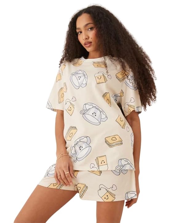 ? FEATURES: Smowkly Two-Piece night suit for women shorts set comes in a variety of stylish prints. The half-sleeve tops feature a simple, round neckline, while the matching shorts have an elastic waistband for a comfortable fit.