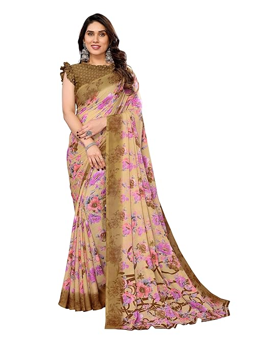 Women’s Printed Flowral Georgette Saree with Unstitched Blouse Piece