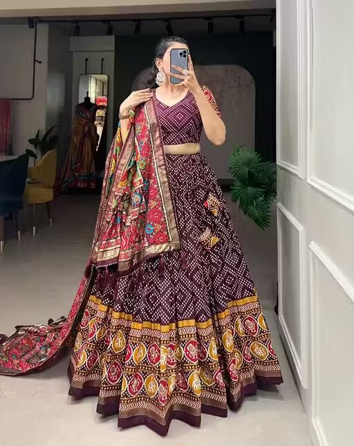 Name : Women’s Trending Designeer Tussar Silk Lehenga Choli Print with Foil Work With Unstitched Blouse with Foil Work