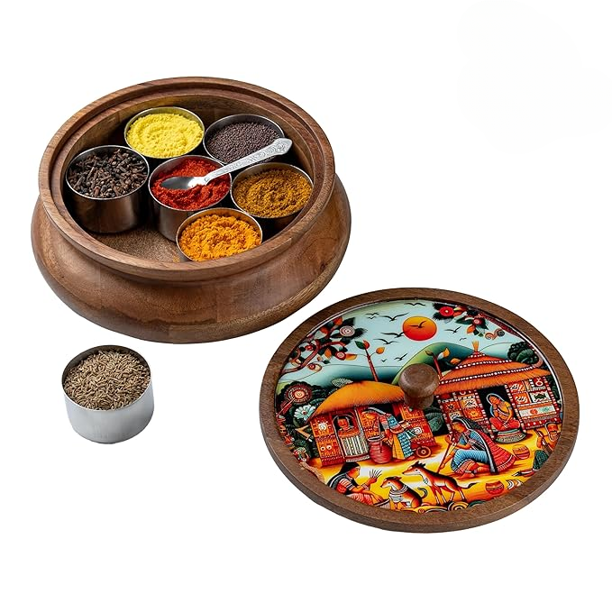 Premium Quality Mango Wood: Civana Homes Handcrafted spice box made from durable mango wood with a natural finish that adds elegance to your kitchen.